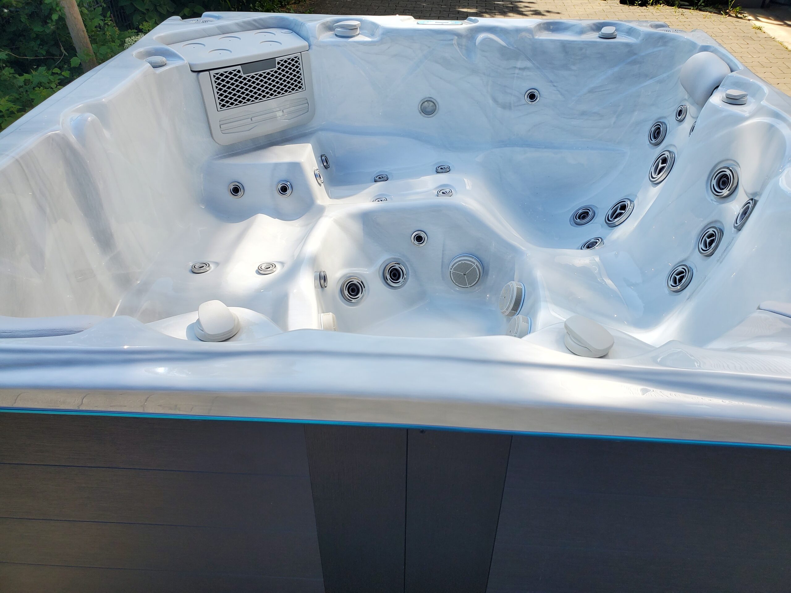 An den Liegeplätzen wurden die Beinlager angehoben, um zusätzlichen Komfort zu bieten. Außerdem verfügt das Whirlpool über Schulter- Massage- Düsen.